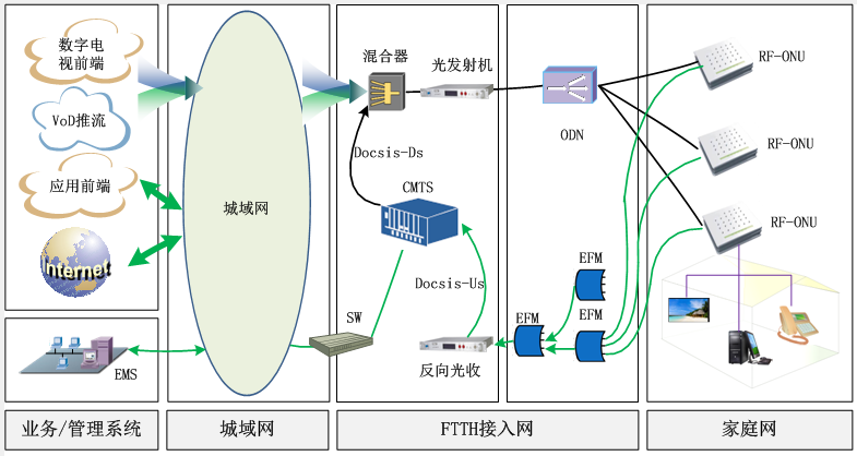 上圖為標(biāo)準(zhǔn)FTTB應(yīng)用